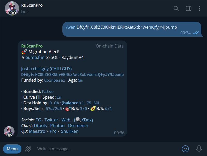 Use the `/wen` command to add any token you want to track on PumpFun. The moment it's live on **Raydium**, you'll get a real-time notification.